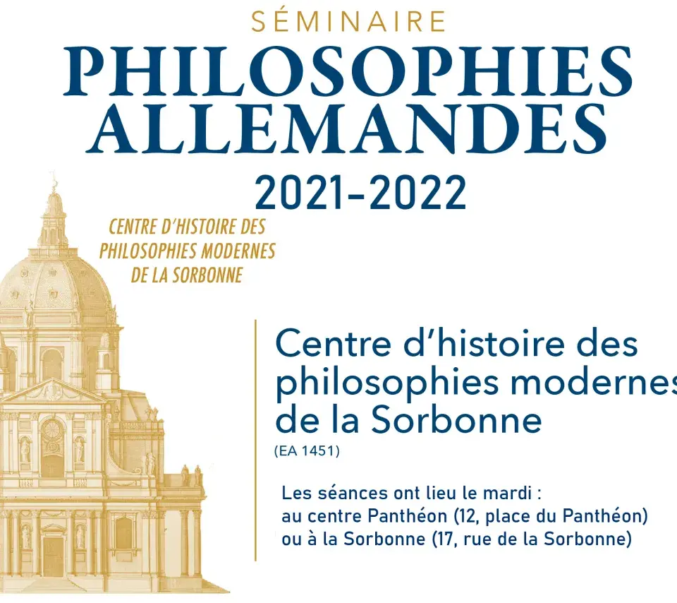 Séminaire Image de couverture Le mardi 12 avril 2022 18h00 20h00 Philosophies allemandes Ajouter à mon calendrier